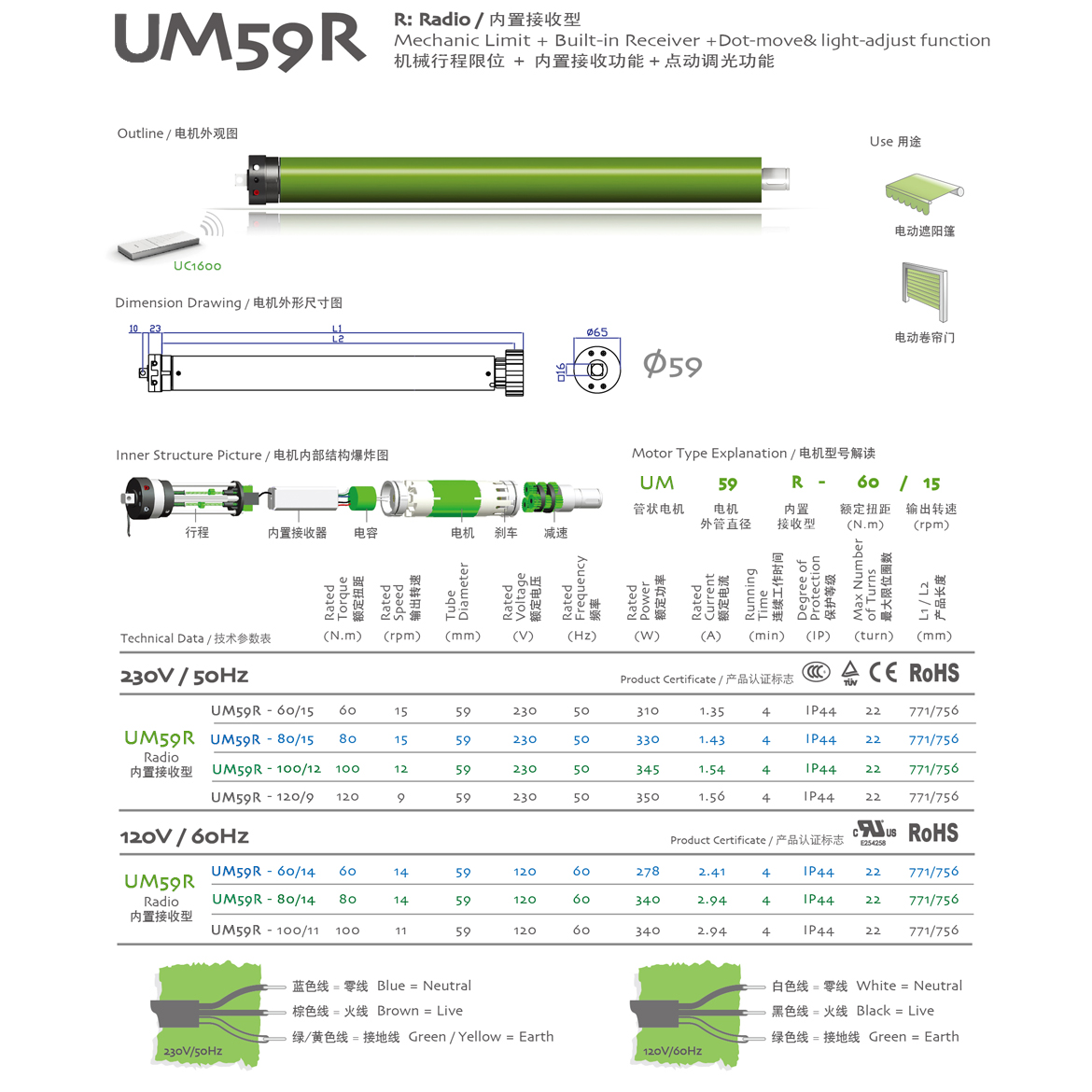 R:Radio/內(nèi)置接收型 機(jī)械行程限位+內(nèi)置接收器+點(diǎn)動(dòng)調(diào)光功能