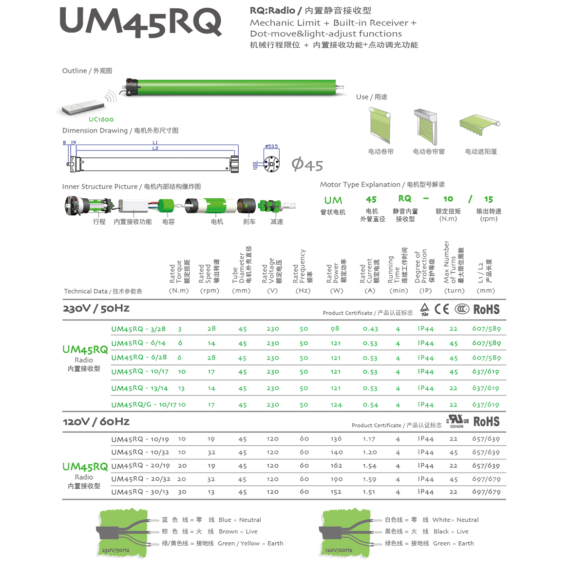 RQ:Quiet/靜音型 機(jī)械行程限位+內(nèi)置接收器+點(diǎn)動(dòng)調(diào)光功能+靜音功能